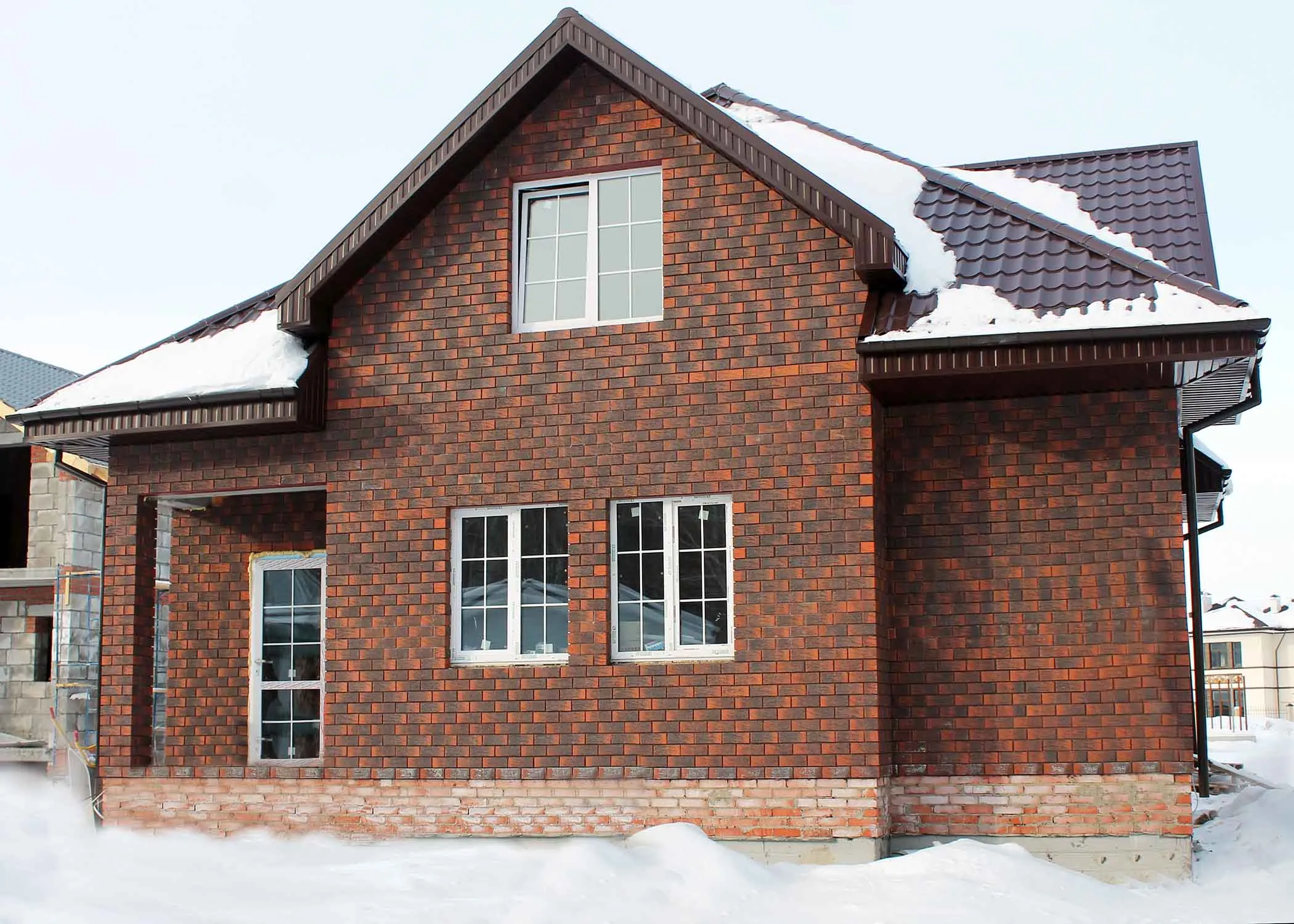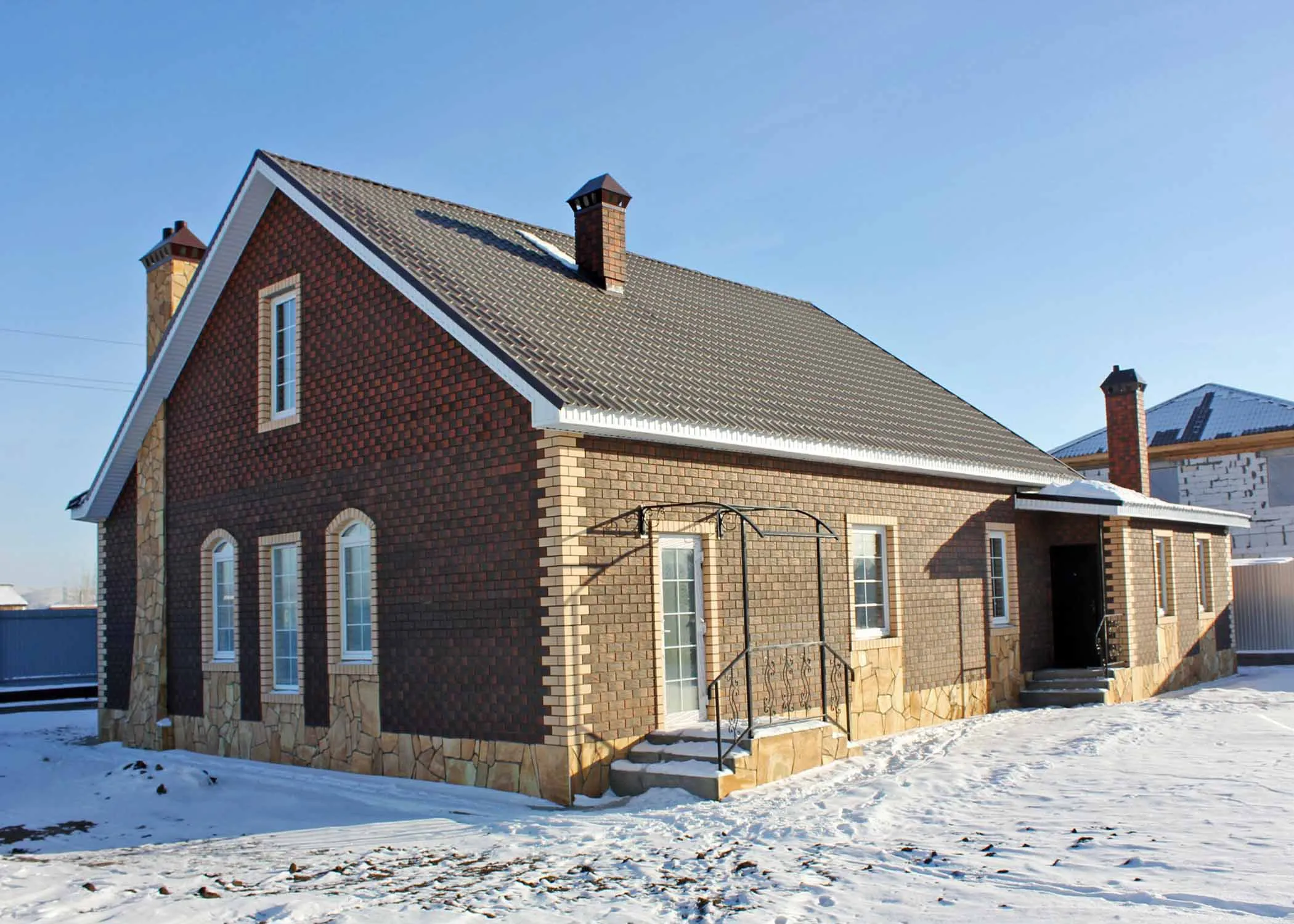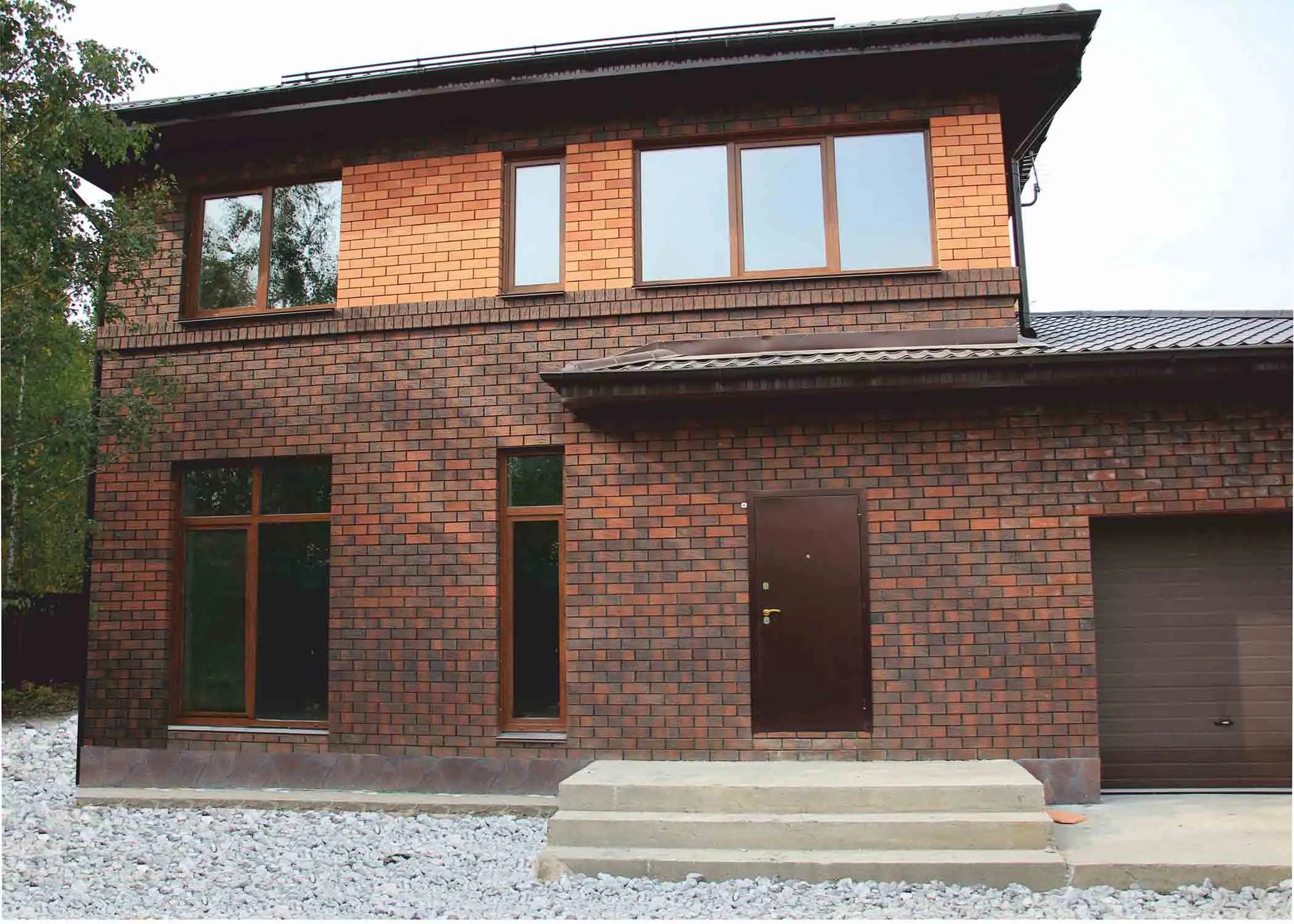 Облицовочный кирпич с фактурой рустики и аутентичным оттенком старинной баварской кладки. Придает фасаду историческую выразительность и эффект массивности.