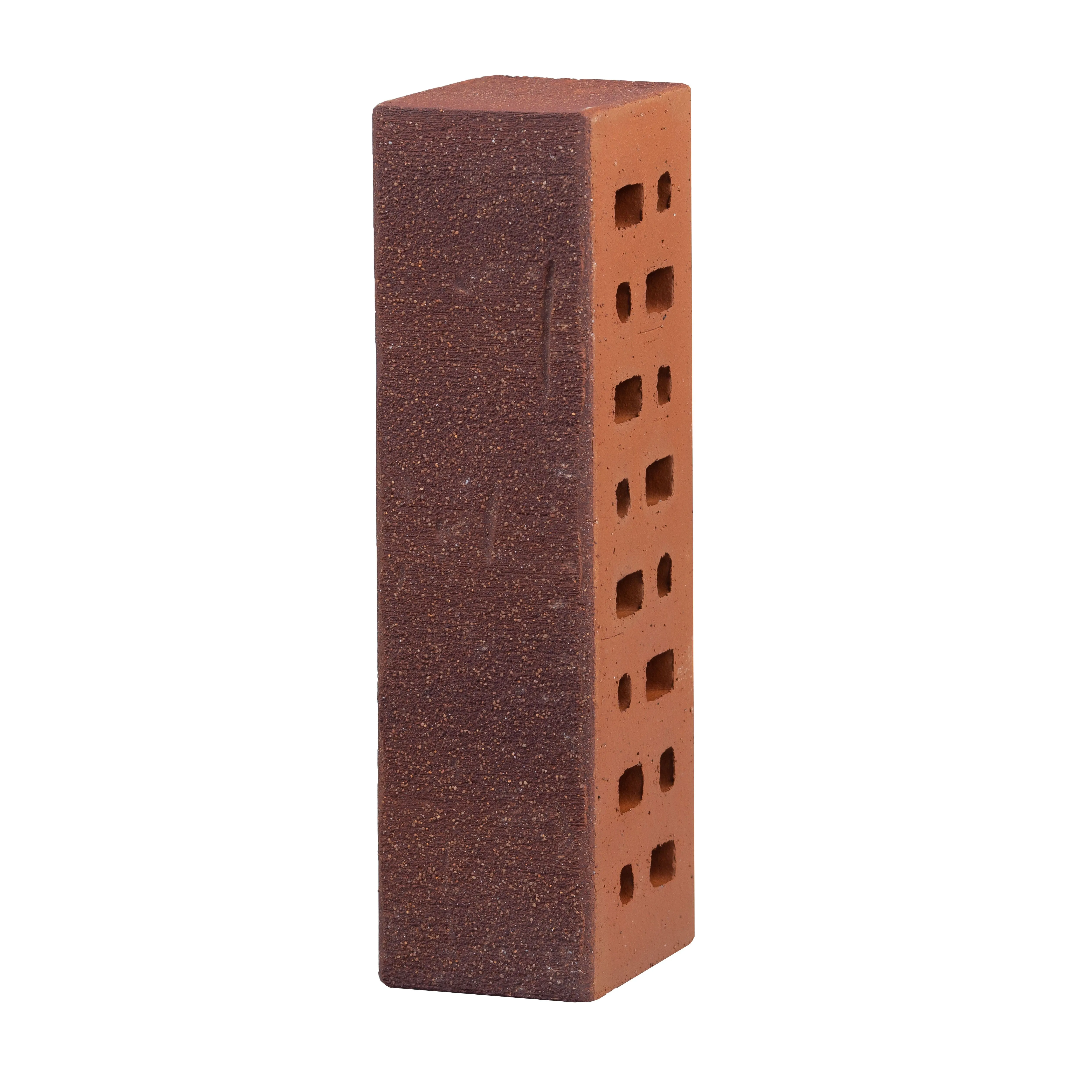 Эксклюзивный клинкерный кирпич с эффектом состаренной поверхности и бордовыми песчаными вкраплениями. Создаёт впечатление благородной старинной кладки.