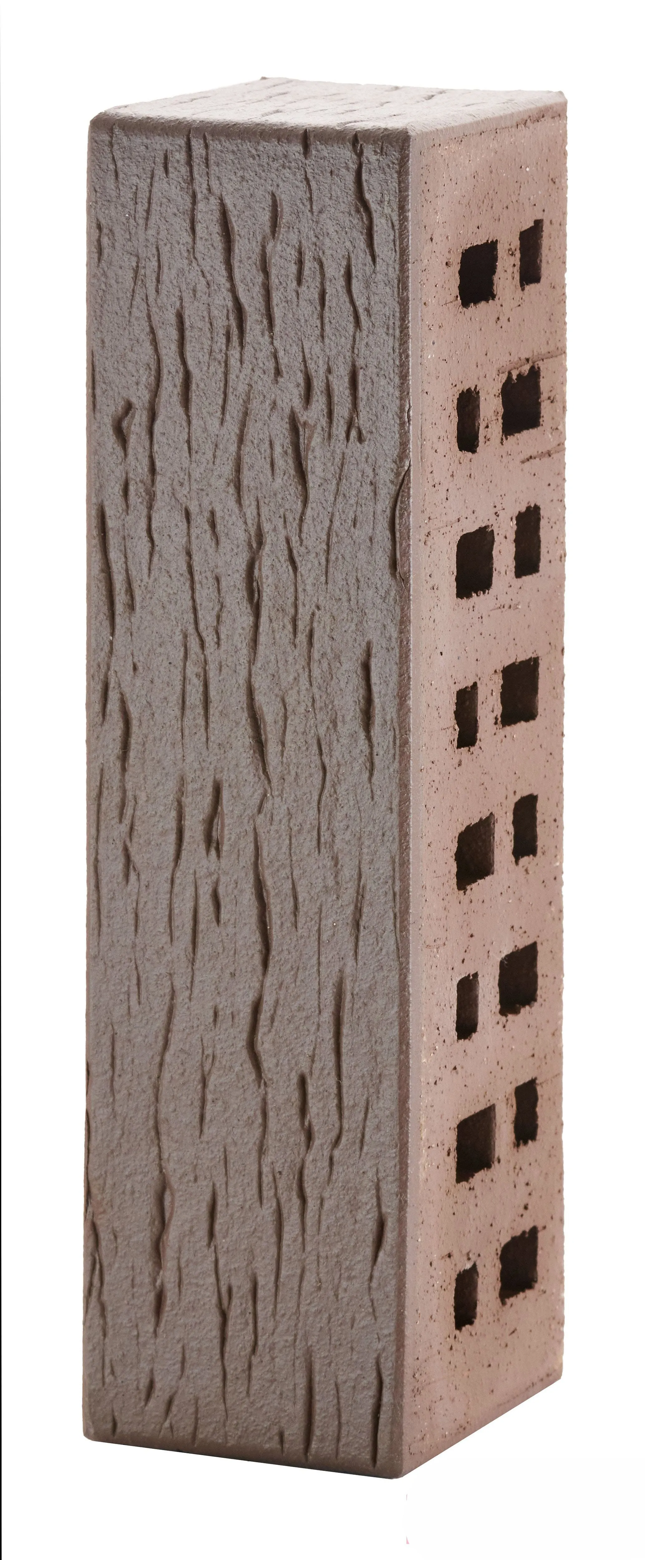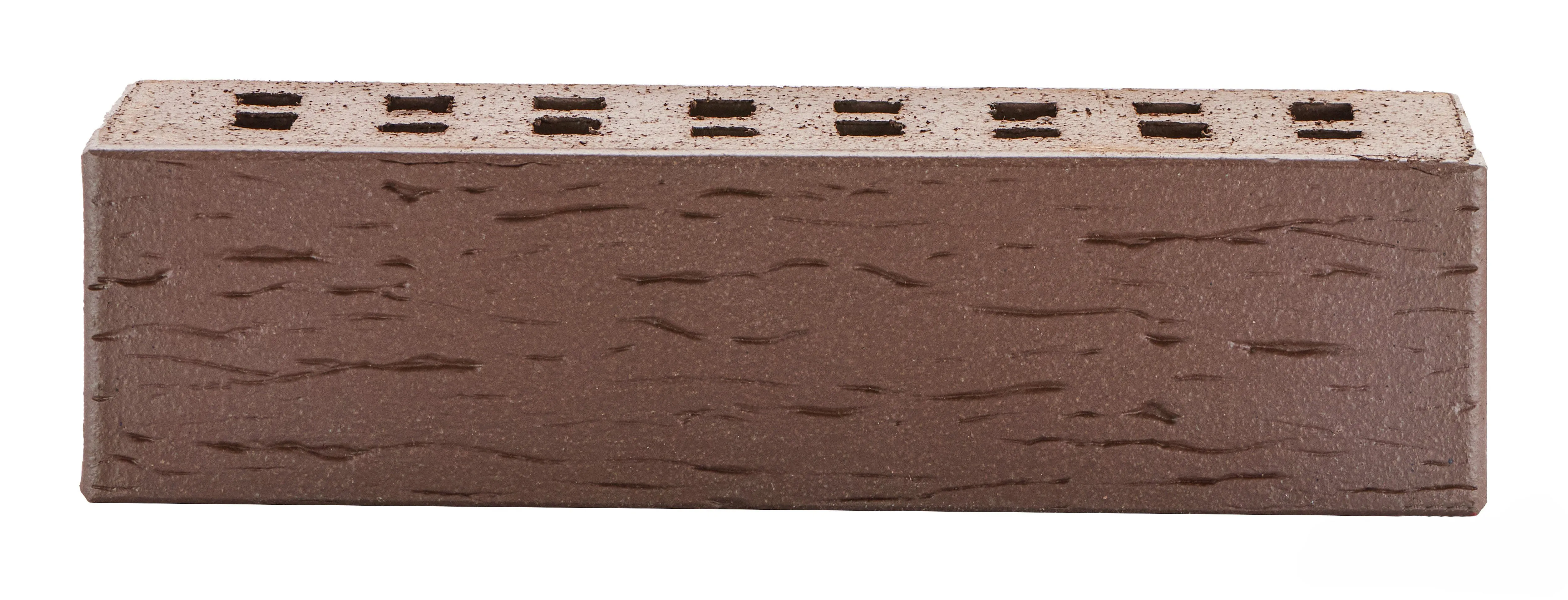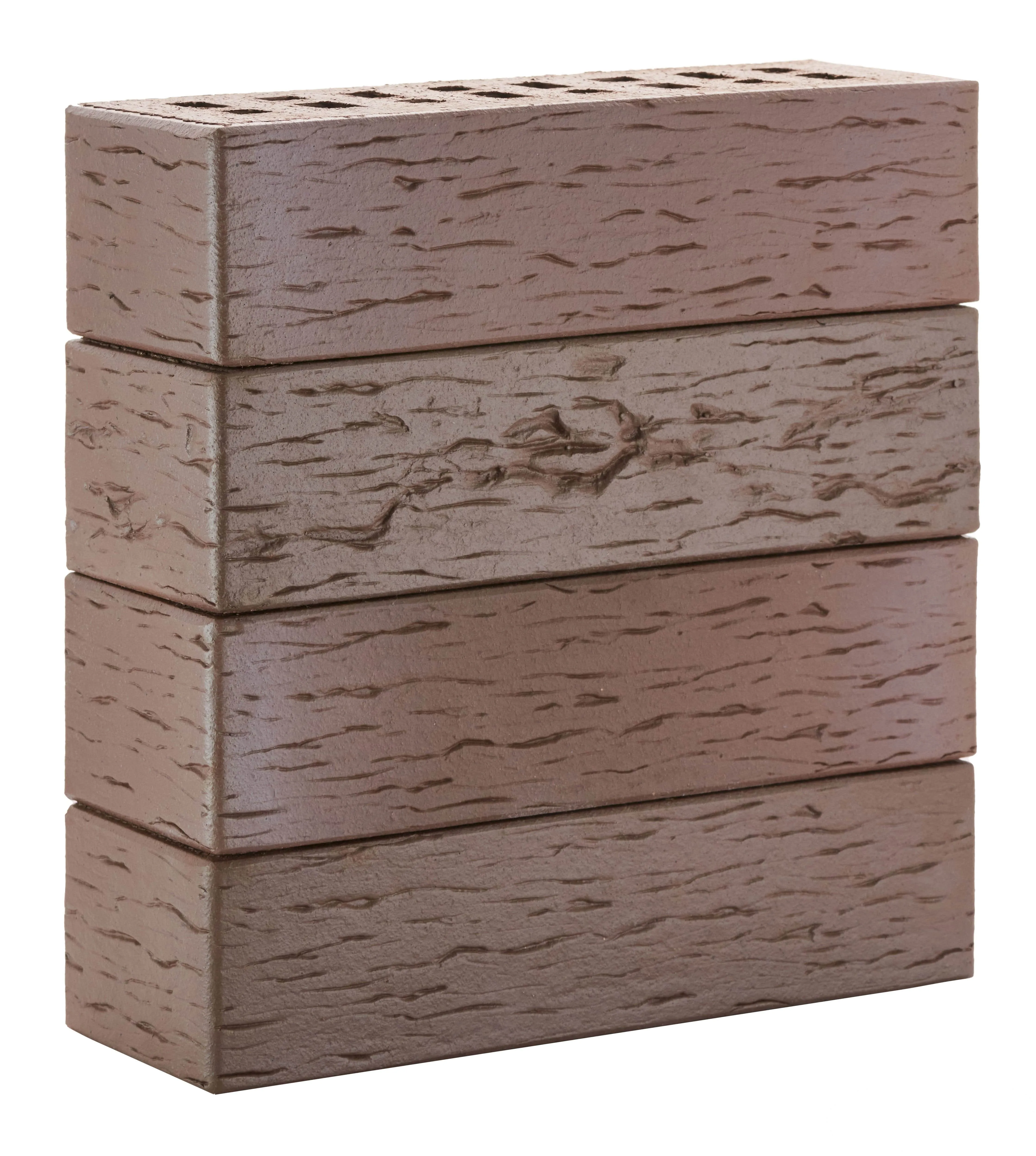 Элитный фасадный клинкерный кирпич глубокого темно-терракотового оттенка с рельефной поверхностью «береста». Создает атмосферу старинных европейских городов.
