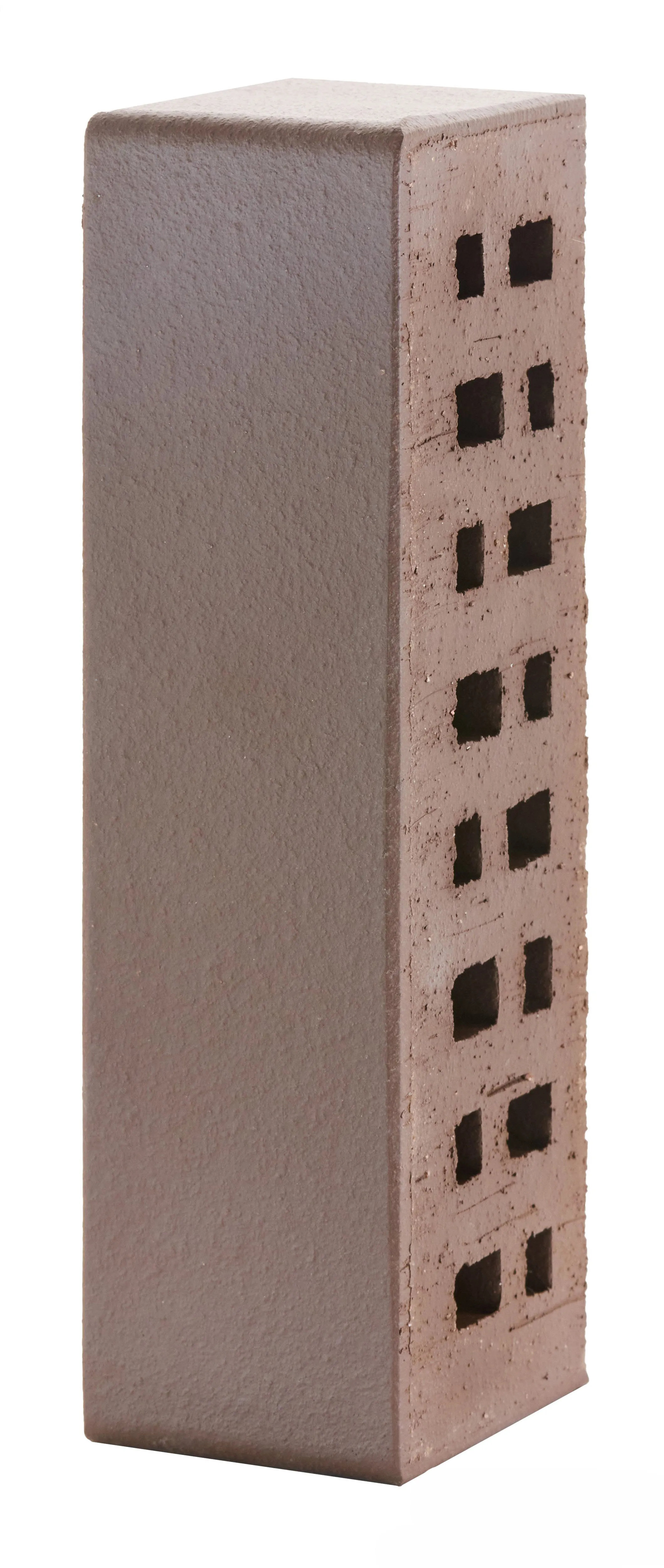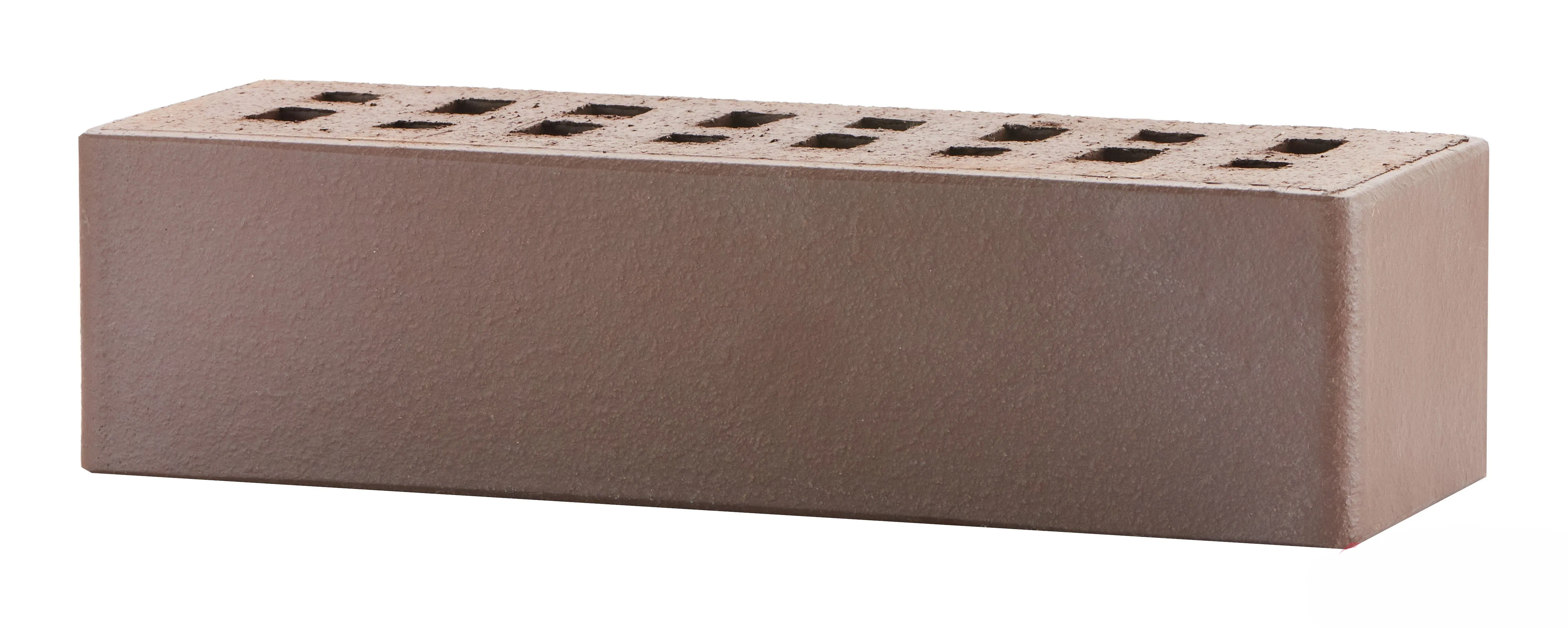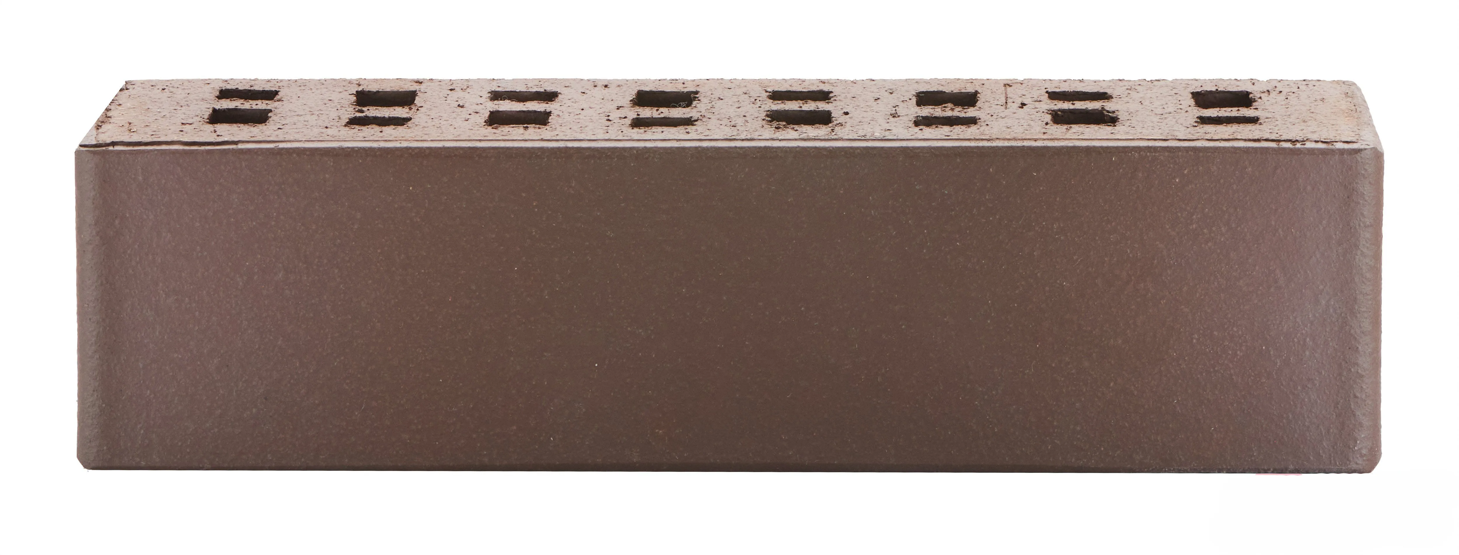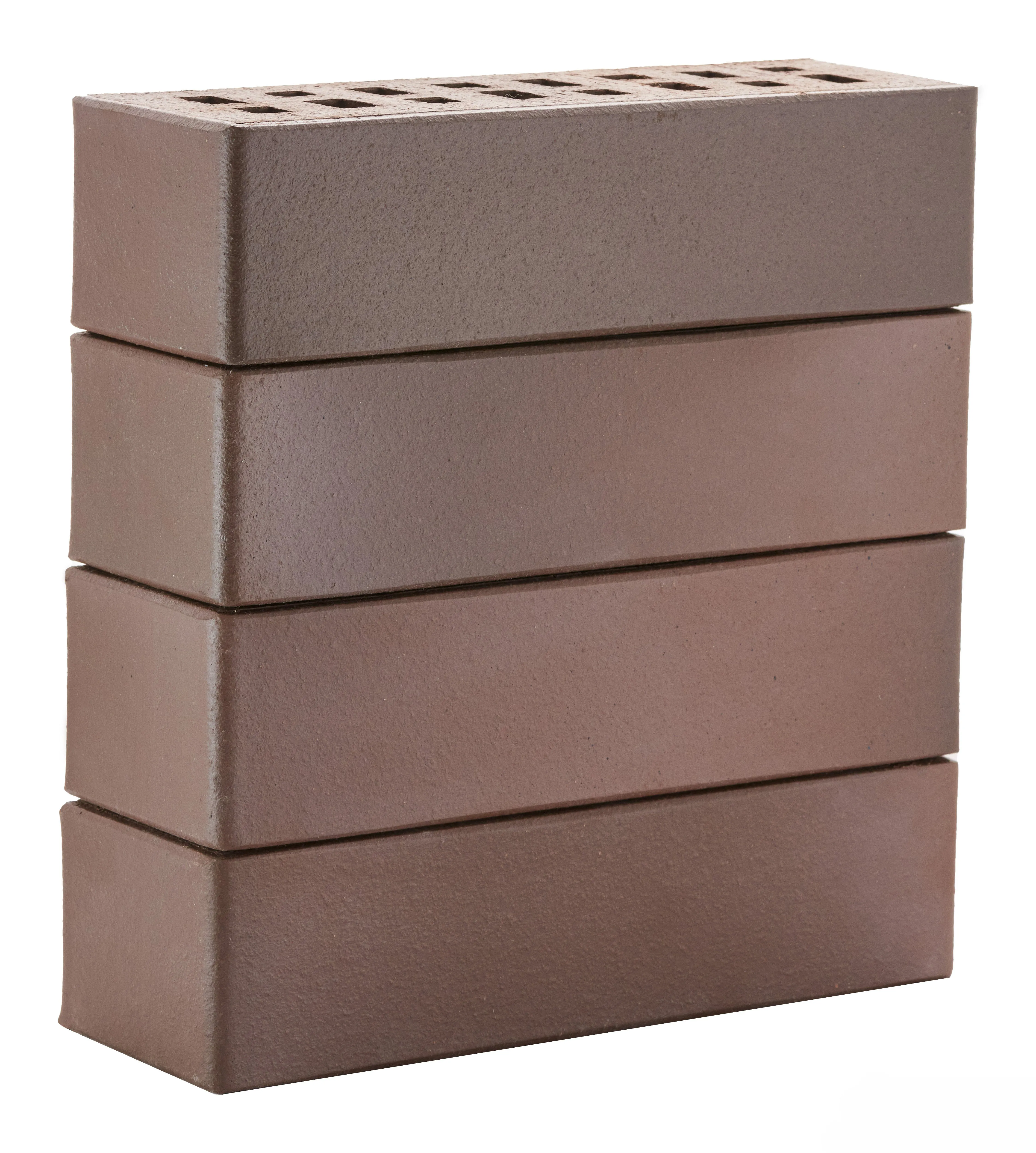 Облицовочный кирпич насыщенного темно-терракотового оттенка с гладкой поверхностью. Подходит для строгих, сдержанных фасадов с эффектом монолитности.