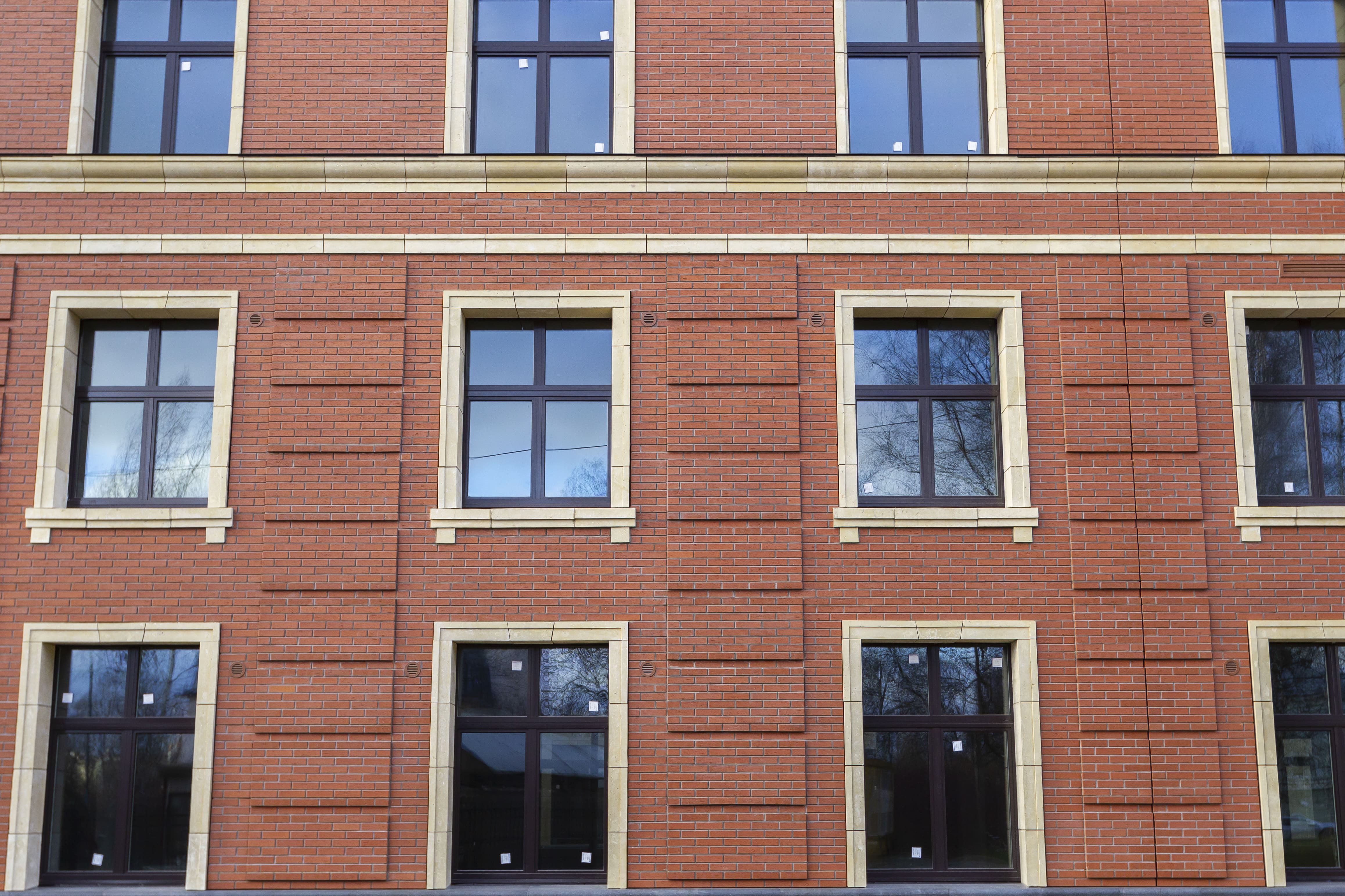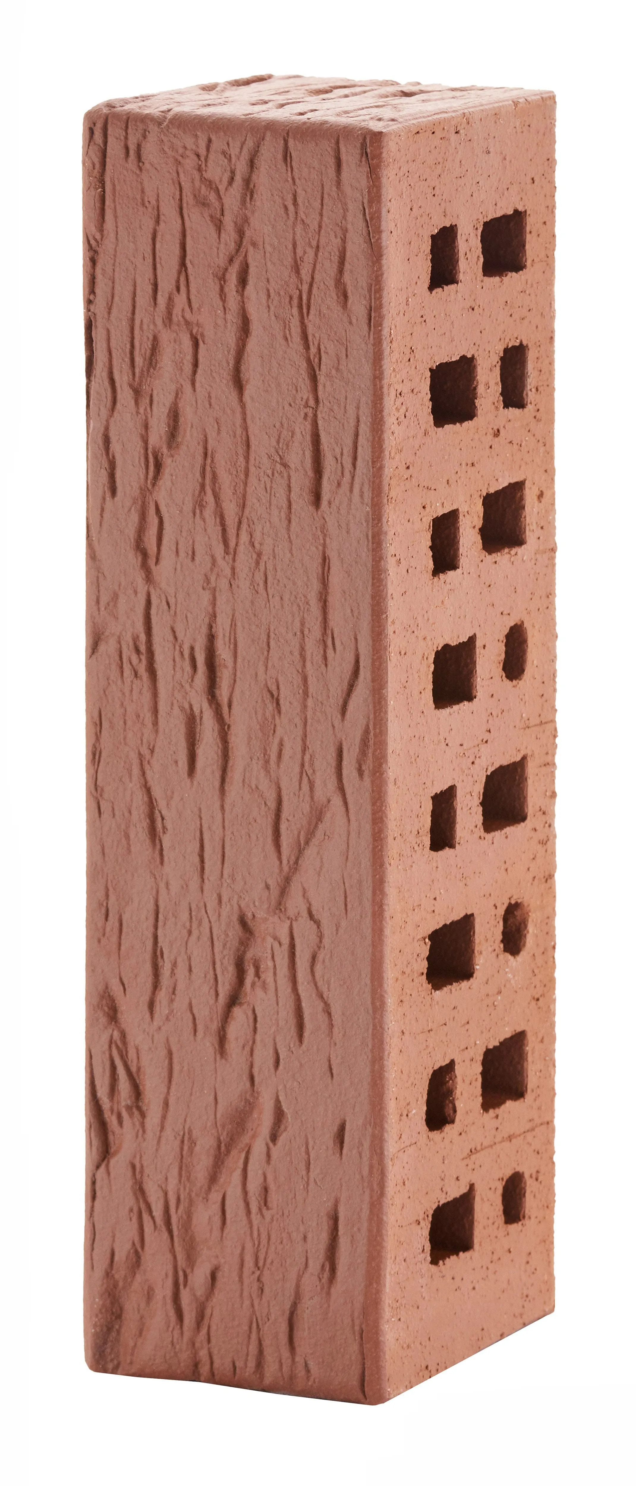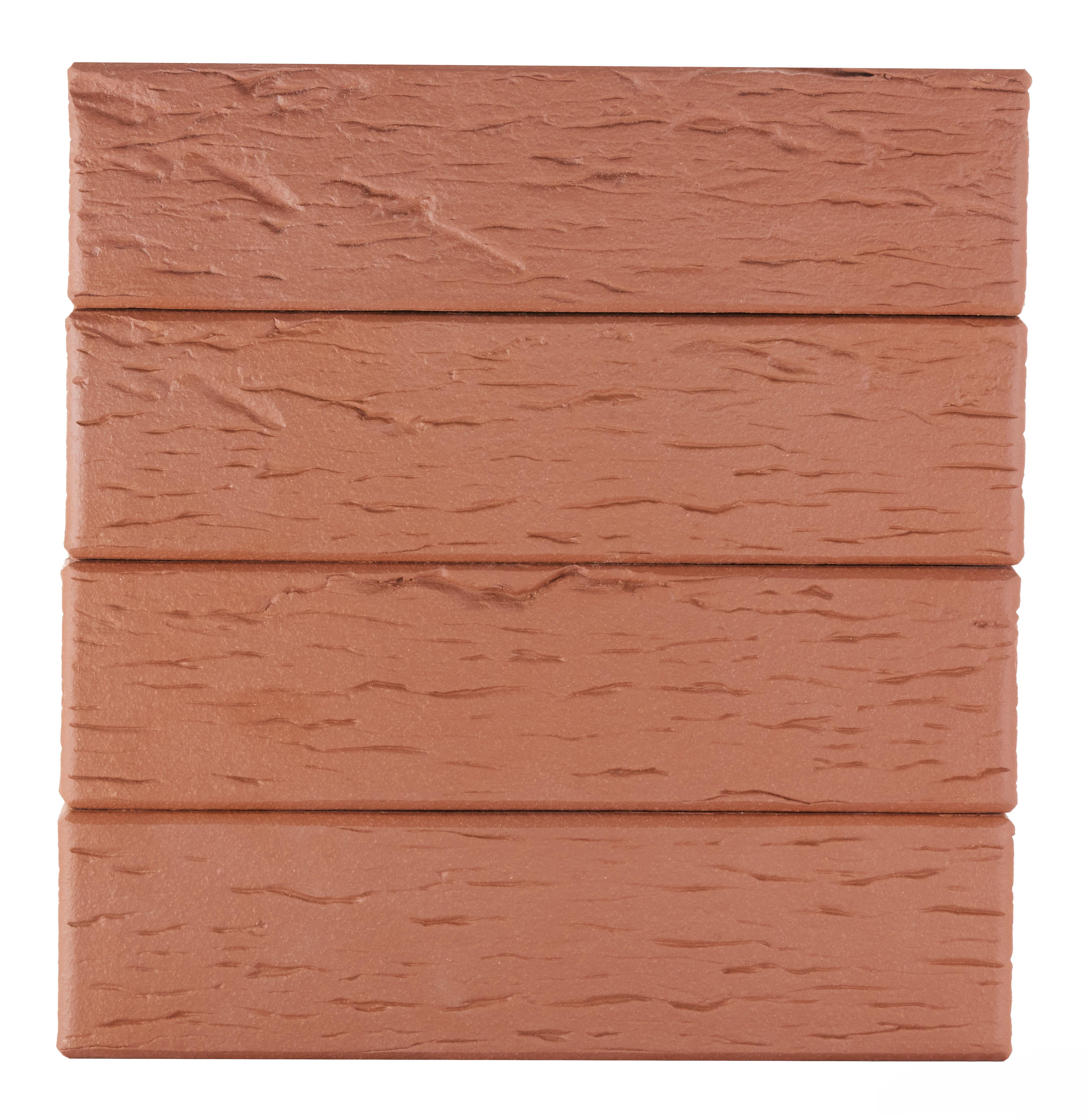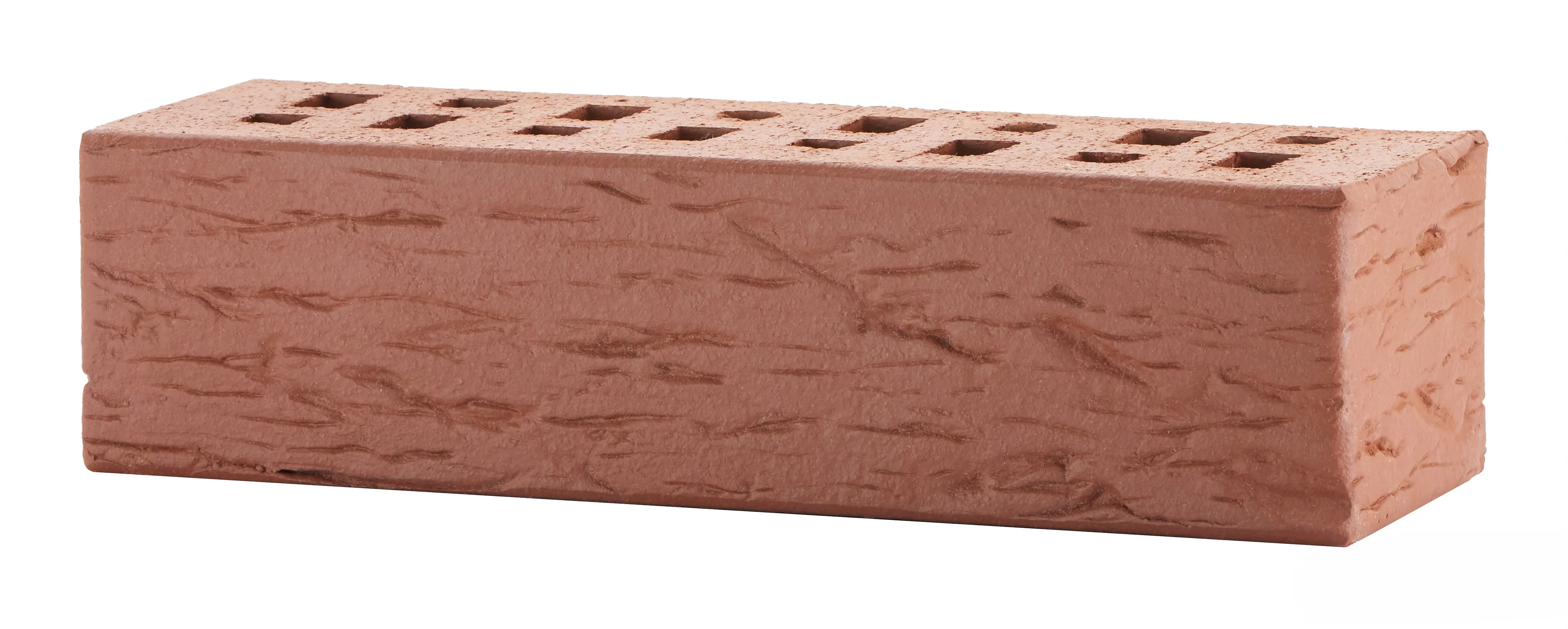 Клинкерный фасадный кирпич глубокого тёмно-красного оттенка с рельефной текстурой «береста». Подходит для создания выразительных фасадов в классическом и готическом стиле.