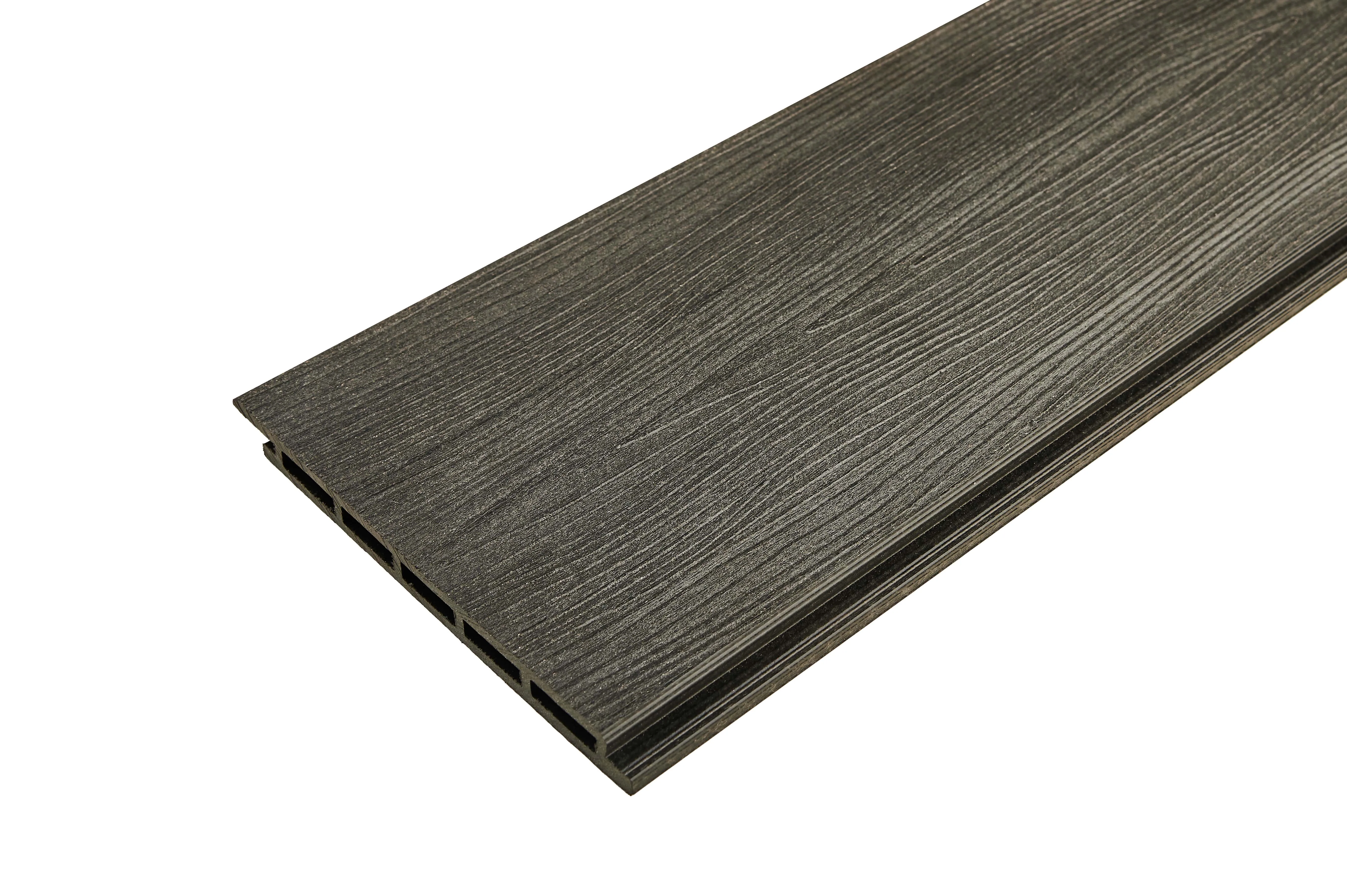 Фасадная панель в насыщенном антрацитовом цвете — современное решение для облицовки зданий, сочетающее визуальную выразительность и функциональность. Панели выполнены из прочного полимерного материала, устойчивого к воздействию внешней среды. Поверхность имитирует текстуру натурального дерева, сохраняя при этом все преимущества современных фасадных систем. Такая отделка придает зданию законченный, эстетически привлекательный вид и эффективно защищает несущие конструкции.